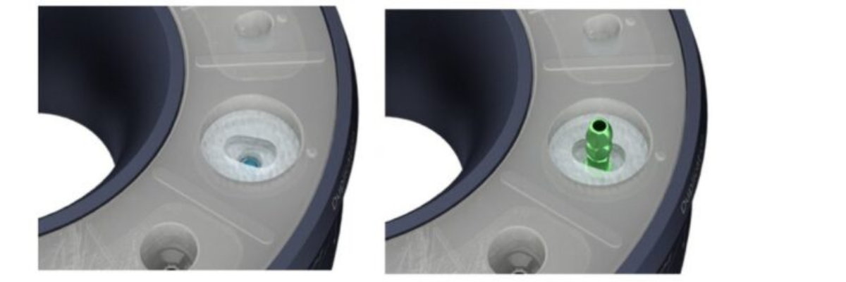 Rotește inelul superior al matriței până când puțul de dublare este aliniat la insertul de conexiune protetică VPI dorit prezent la baza matriței.