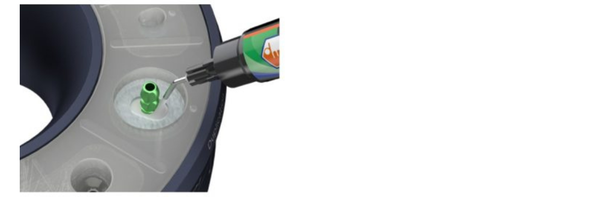 Instalează bontul personalizat de vindecare în implant, utilizând șurubul de reținere disponibil împreună cu bontul temporar utilizat.