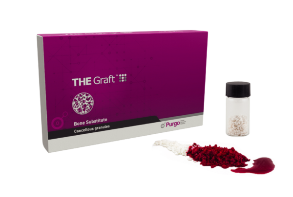 - THE Graft™ — substituent osos de origine porcină, deproteinizat, cu structură minerală naturală (granule/seringă). Procesarea atinge cerințele ASTM F1581; material cu suprafață specifică mare pentru adsorbția proteinelor și ancorarea celulelor. Indicat pentru ARP/GBR, ridicări de sinus, defecte intraosoase.